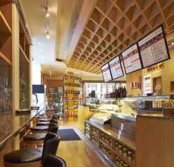 提供新鲜烹制的三明治,自制糕点,蛋糕和巧克力。咖啡,美味的肉类,奶酪和精选各国葡萄酒,啤酒和烈酒。